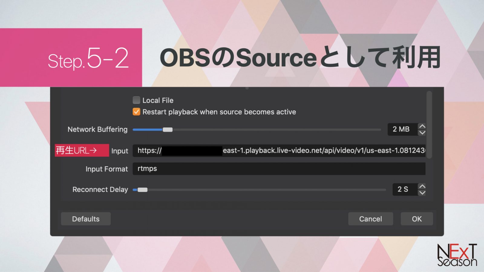 Amazon IVSのRTMPに送ったストリームをOBSのソースとして取り込みができました!