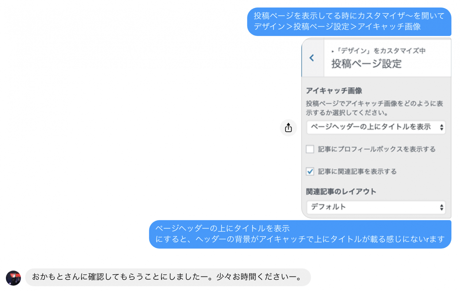 WordPressのテーマカスタマイザーはテーマ毎に実装がそれぞれなので、希望する設定する画面の説明をしないとわかりにくかったですね、すみません、、、