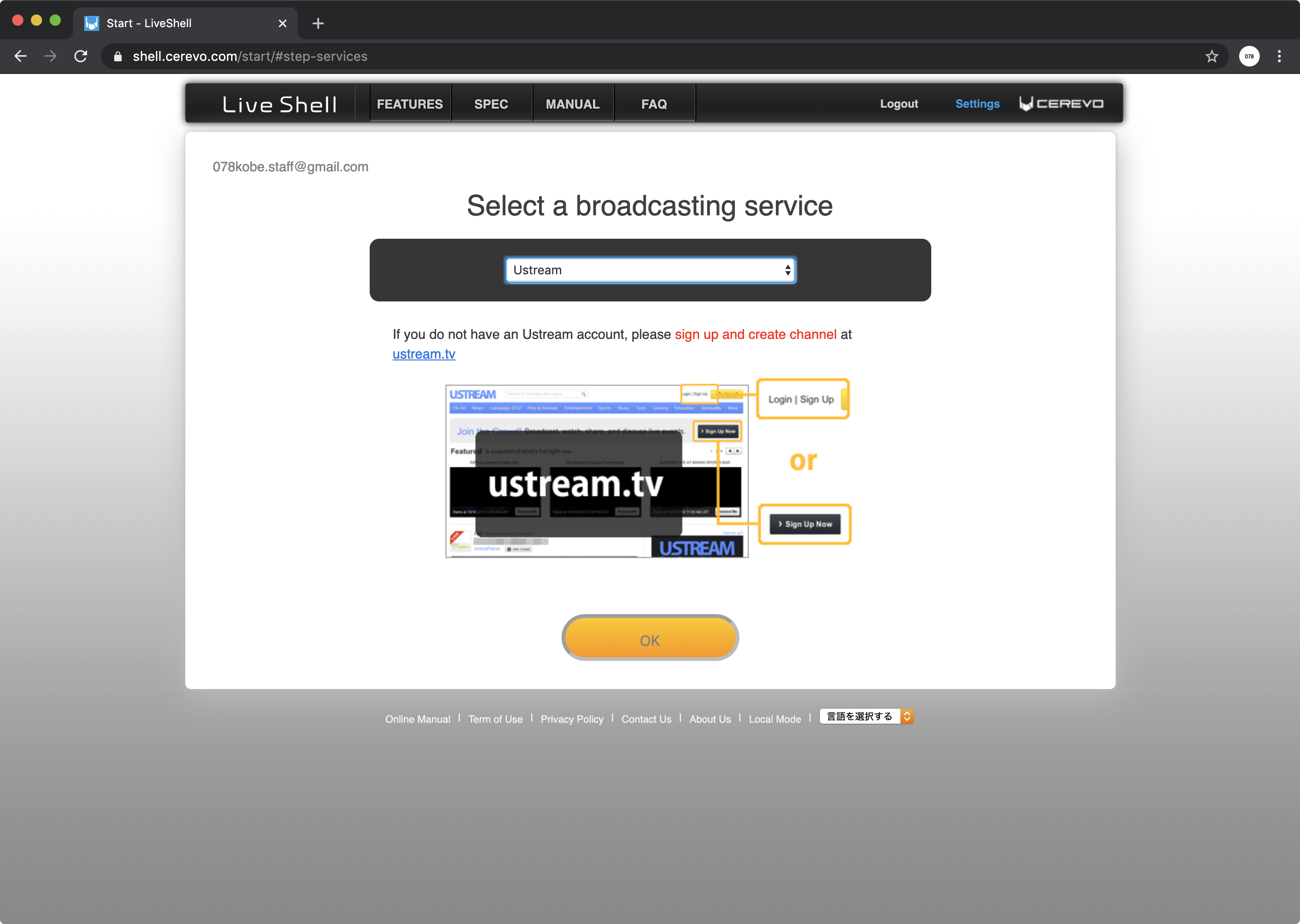Cerevoダッシュボードにメールアドレス / パスワードでアカウントにログイン