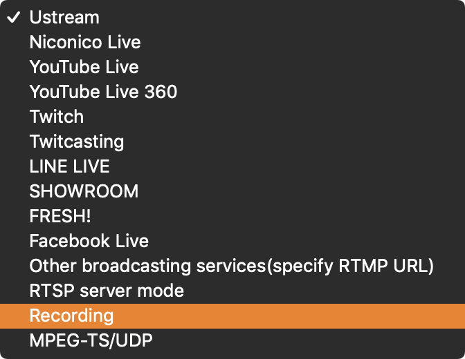&初期設定画面の場合は配信なしが選択できないため本体にmicroSDカードをセットして”Recording / 録画”を選択して初期設定を完了させる。