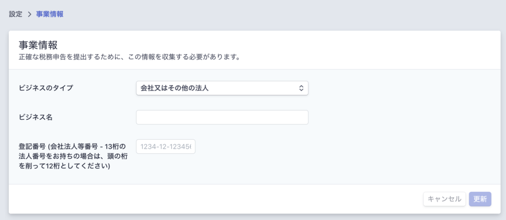 事業情報を入力
