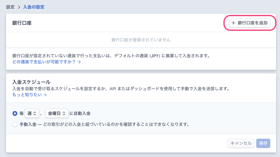 銀行口座を追加をクリック