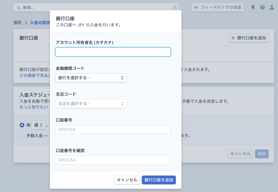 口座情報を入力します