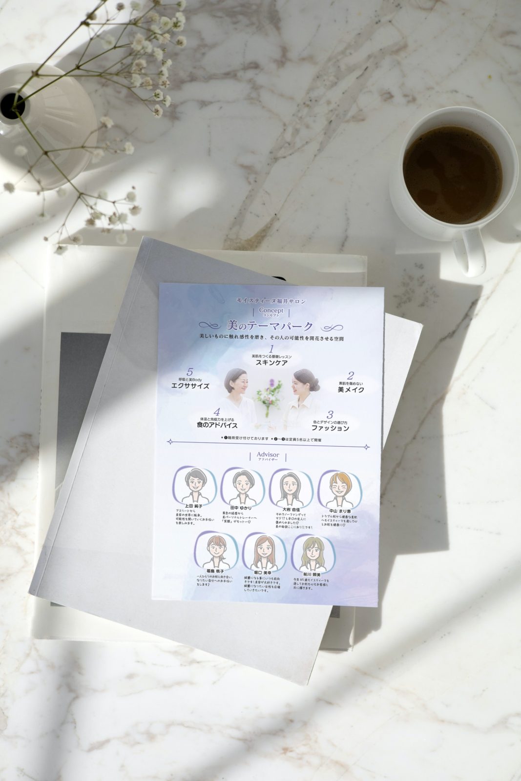 美のテーマパーク!そしてスタッフの方がたくさんいらっしゃるので、綺麗で楽しげな雰囲気になるように、でも固すぎないイメージでということでした。