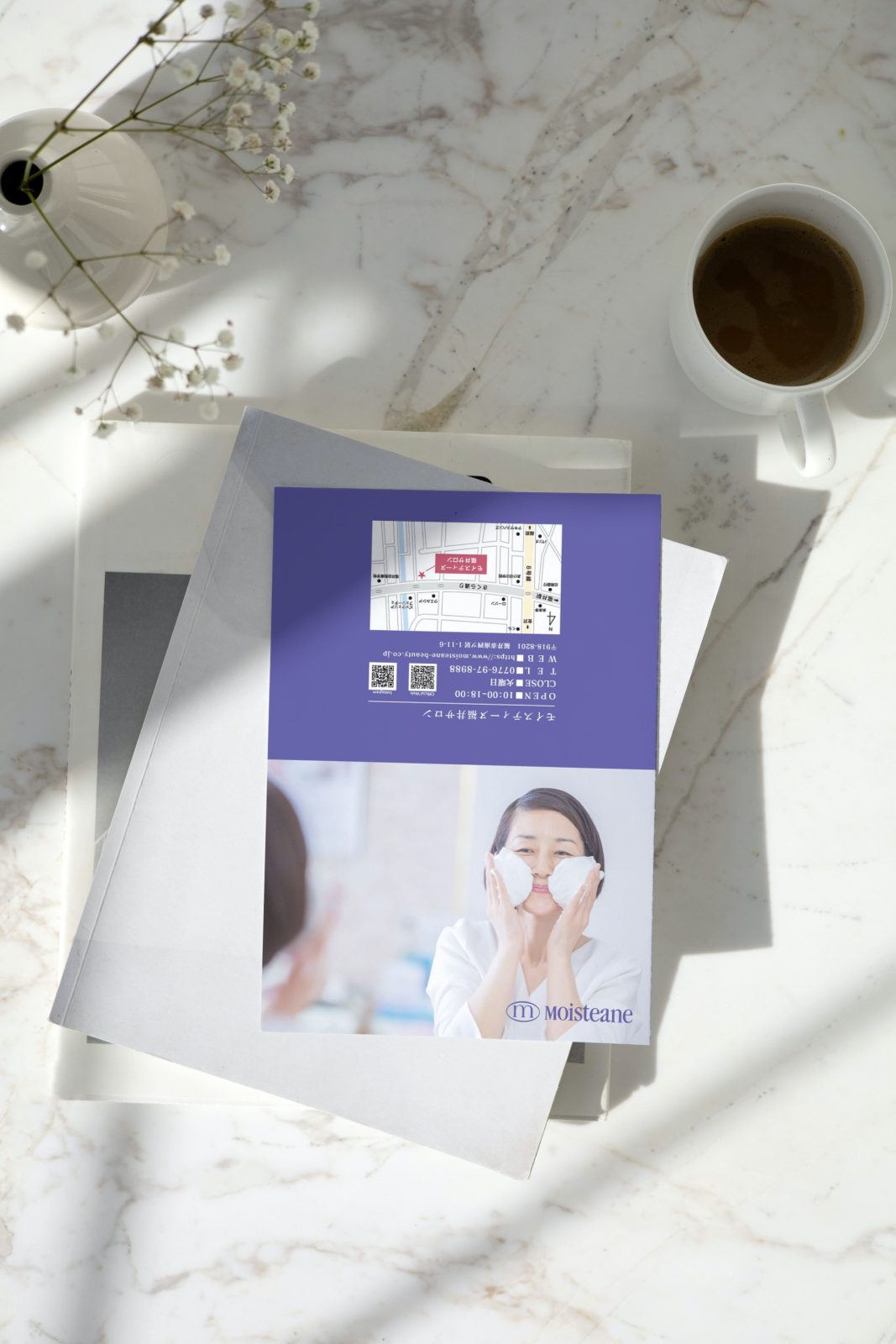 コーポレートサイトやプロモーションアイテム作成をいつもご依頼いただいている株式会社 モイスティーヌ美容研究所より新規店舗オープンに関わる印刷アイテムをご依頼いただきました。